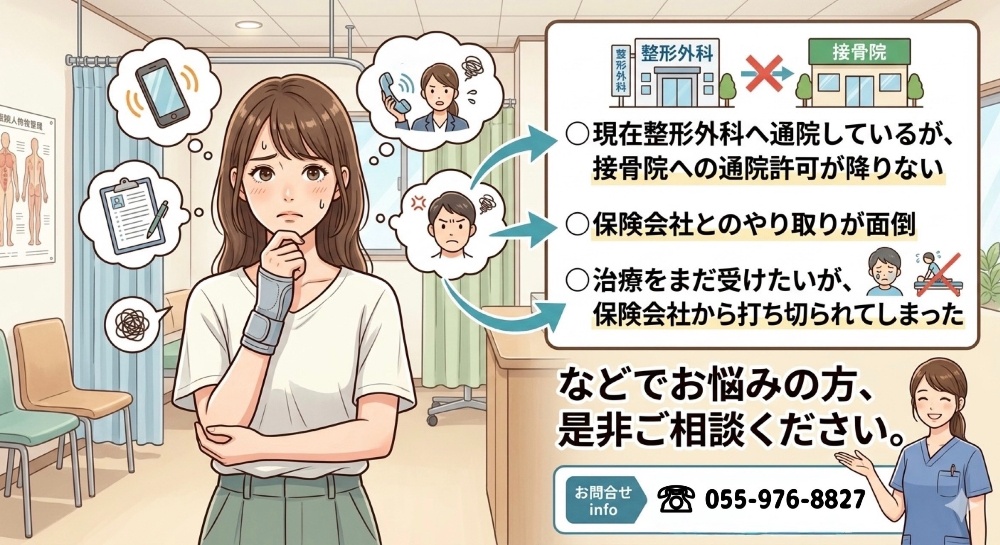 ◯現在整形外科へ通院しているが、接骨院への通院許可が降りない
